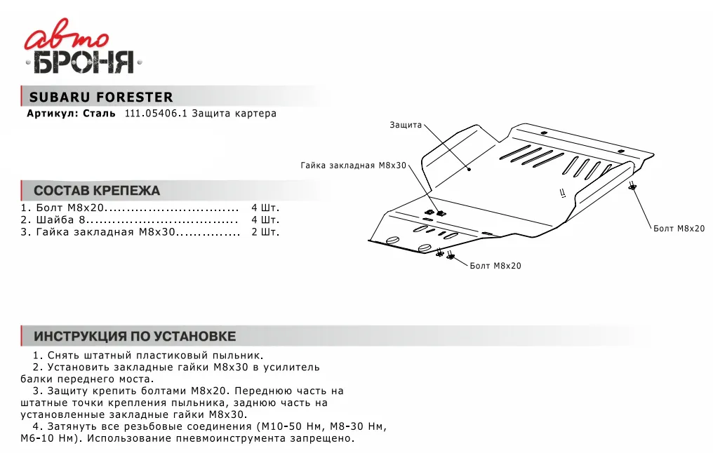 Металлическая защита двигателя Subaru Forester SH 2007-2013. Оригинальный номер 111.05406.1