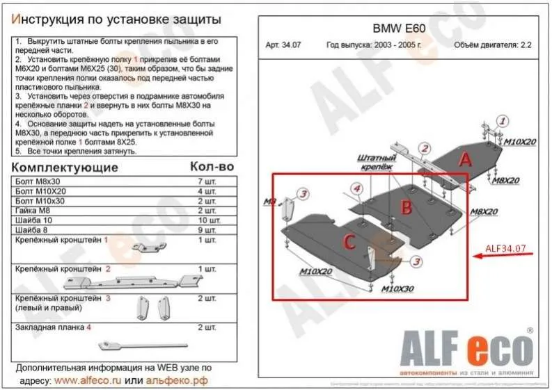 Металлическая защита двигателя BMW 5 E60/E61 2003-2010. Оригинальный номер ALF3407