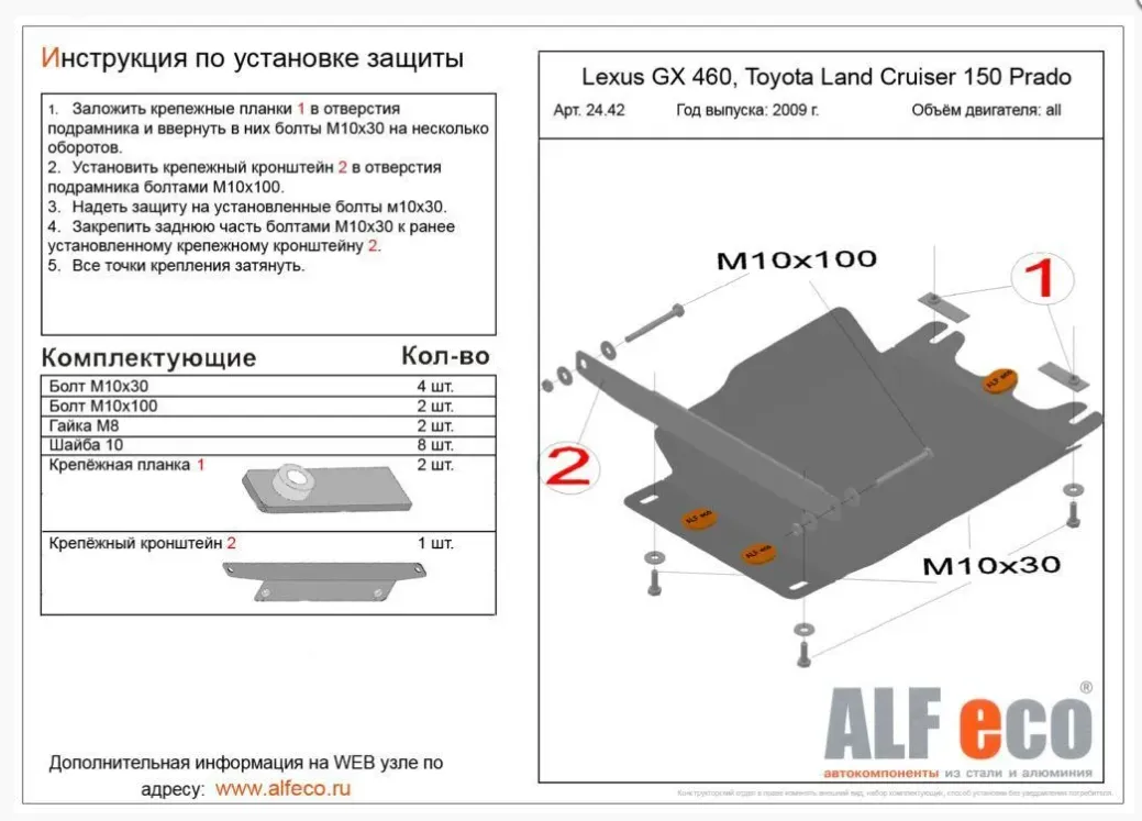 Металлическая защита кпп Lexus GX 2 2009-2022. Оригинальный номер ALF2442