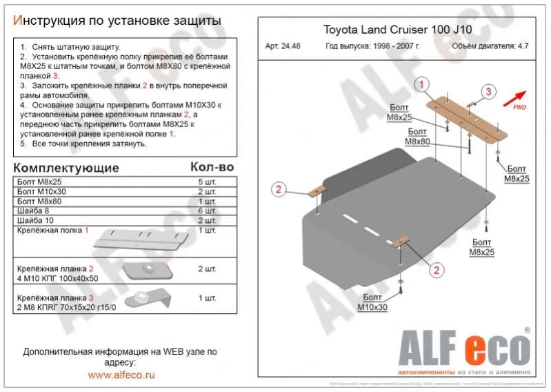 Алюминиевая защита КПП и РК Toyota Land Cruiser 100 1998-2007. Оригинальный номер