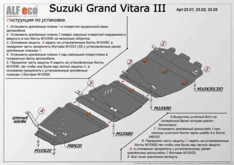 Металлическая защита двигателя Suzuki Grand Vitara JT 2005-2015. Оригинальный номер ALF2301