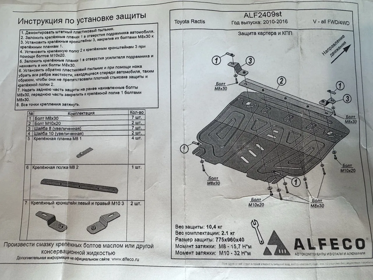 Металлическая защита двигателя и кпп Toyota Yaris 2 2005-2012. Оригинальный номер ALF2409
