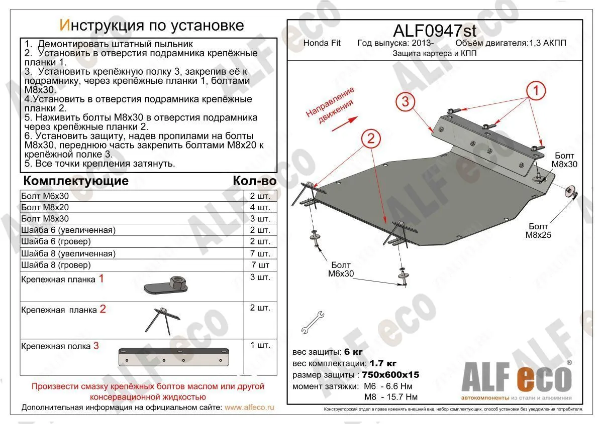 Металлическая защита двигателя и кпп Honda Fit 3 2013-2020. Оригинальный номер ALF0947