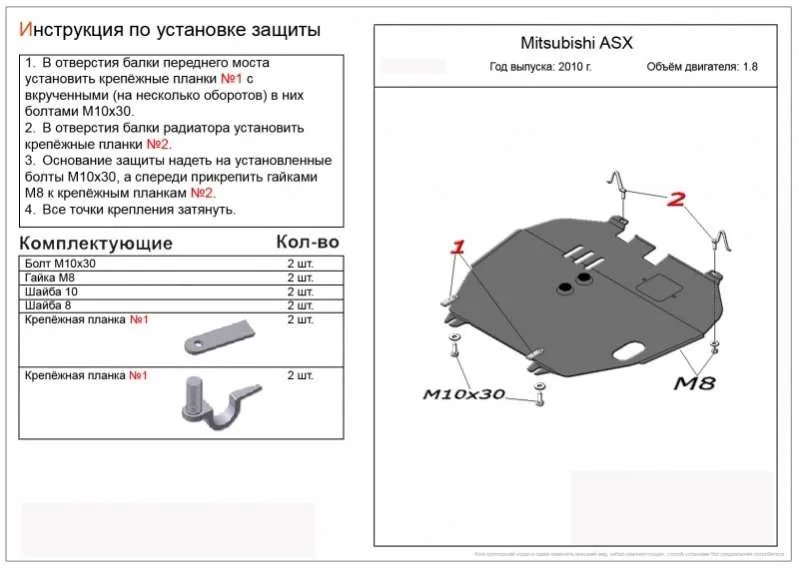 Металлическая защита двигателя и кпп Mitsubishi ASX 2010-2022. Оригинальный номер ALF1402
