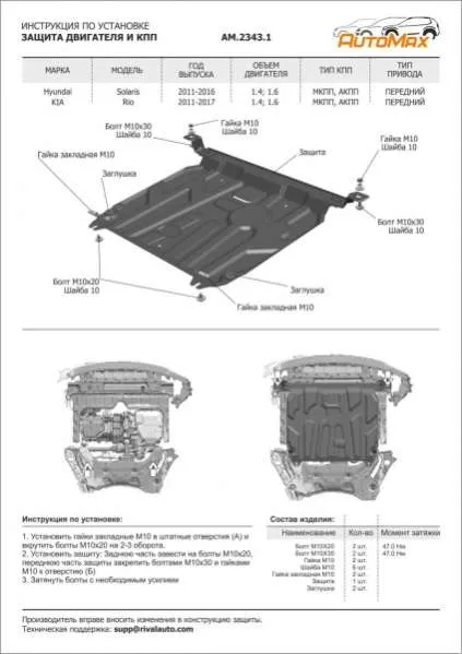 Металлическая защита двигателя и кпп Kia Rio 3 2011-2017. Оригинальный номер AM23432