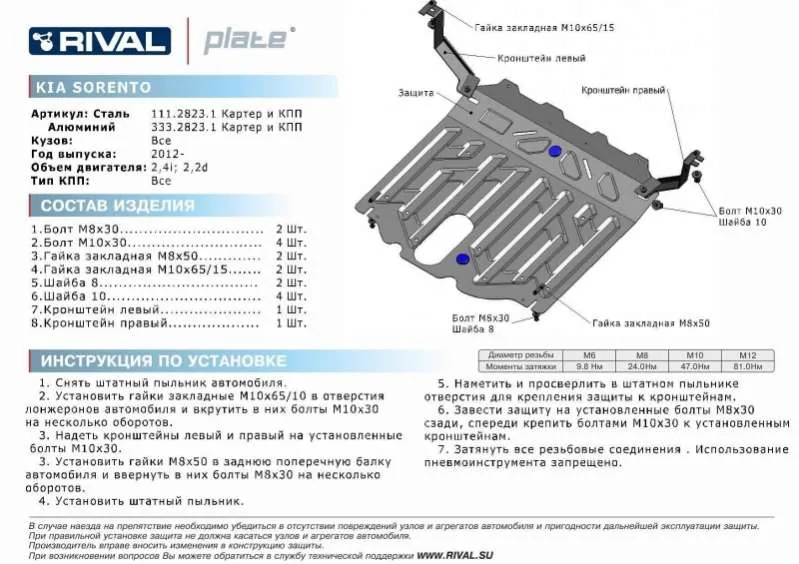 Алюминиевая защита двигателя и кпп Kia Sorento 2 restailing 2012-2021. Оригинальный номер 333.2823.1