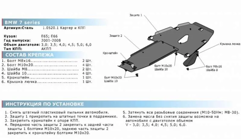 Металлическая защита двигателя и кпп BMW 7 E65/E66 2001-2008. Оригинальный номер ALF3430,11105201