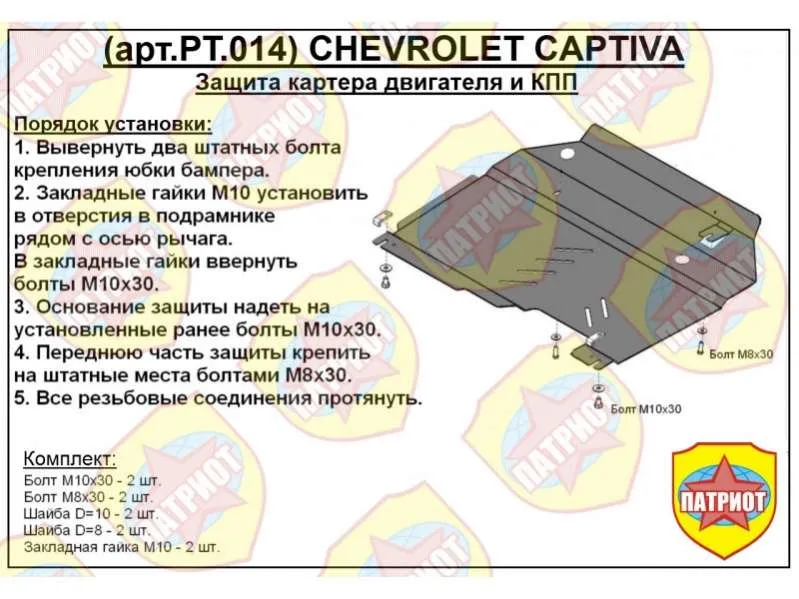 Металлическая защита двигателя и кпп Opel Antara 2006-2011. Оригинальный номер PT.014