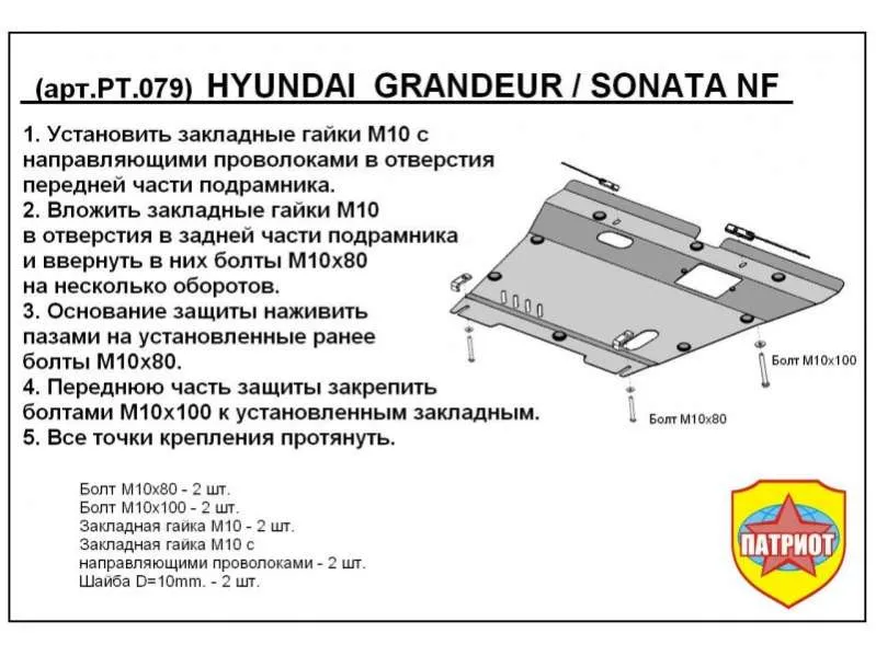 Металлическая защита двигателя и кпп Hyundai Sonata (NF) 2004-2010. Оригинальный номер PT.079