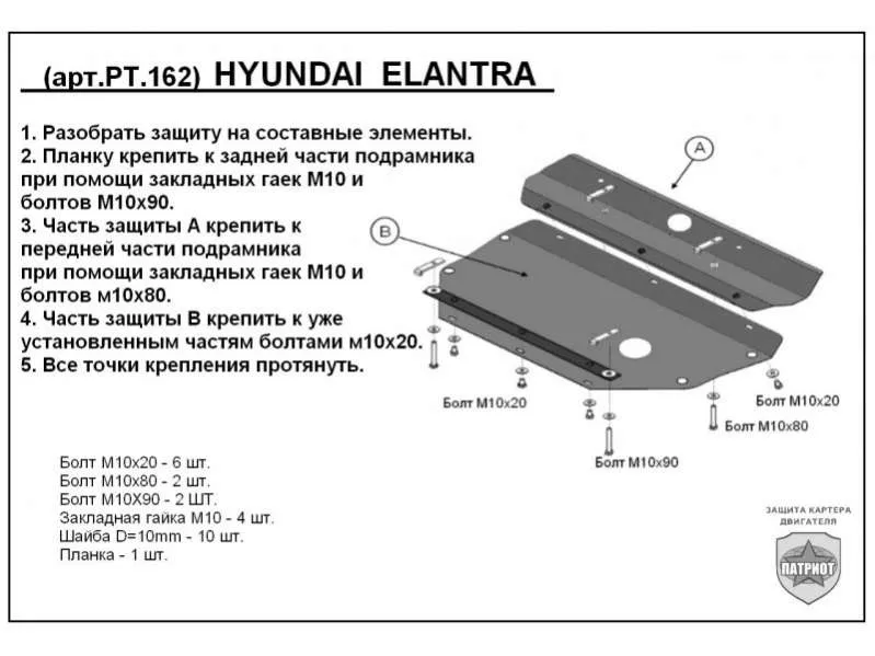 Металлическая защита двигателя и кпп Hyundai Elantra XD 2000-2006. Оригинальный номер PT.162