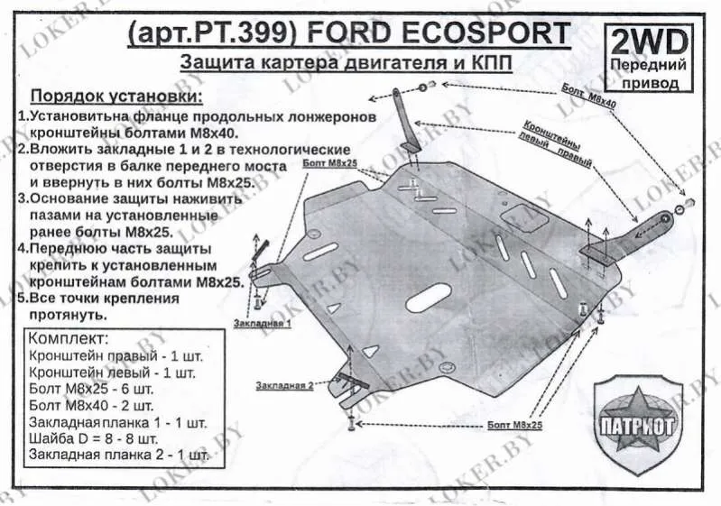 Сталь 2мм, обработана полимерной краской, крепеж в комплекте, установка в штатные места