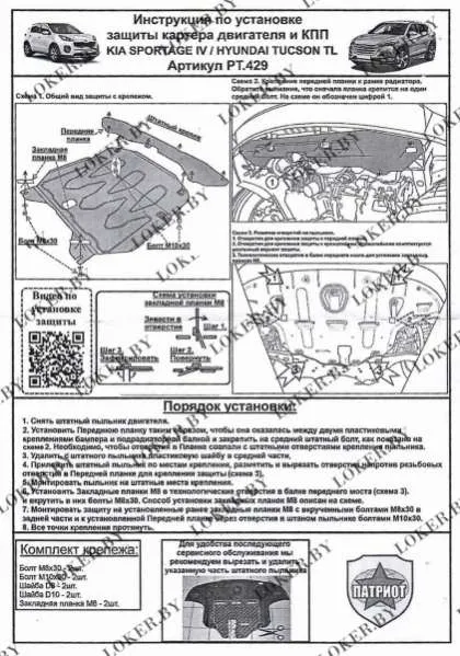 Металлическая защита двигателя и кпп Kia Sportage 4 2015-2022. Оригинальный номер PT.429