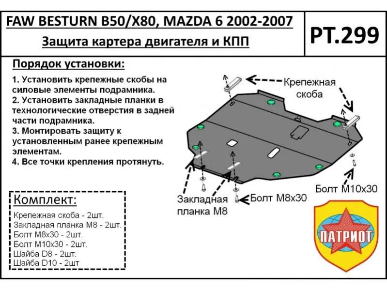 Металлическая защита двигателя и кпп Mazda 6 1 2002-2008. Оригинальный номер PT.299
