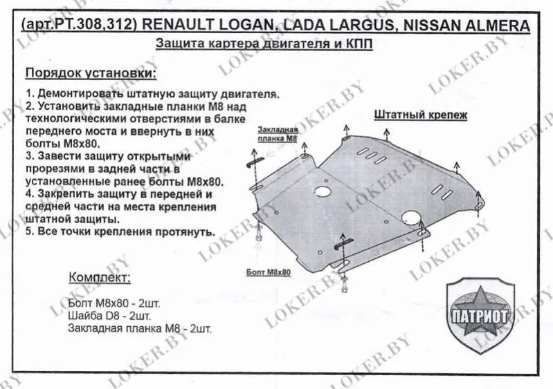 Металлическая защита двигателя и кпп Renault Lodgy 2012-. Оригинальный номер PT.308