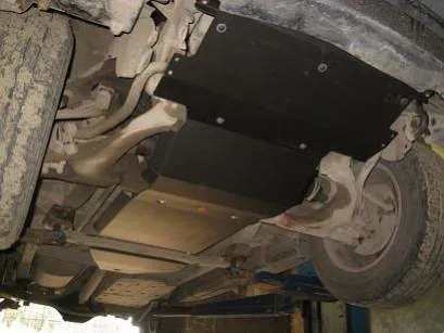 Металлическая защита устанавливается под переднюю часть автомобиля и закрывает сразу два узла — радиаторы и нижнюю часть двигателя. Она предотвращает повреждение агрегатов при контакте с камнями, бордюрами, льдом и неровностями дороги, а также уменьшает воздействие грязи и реагентов.