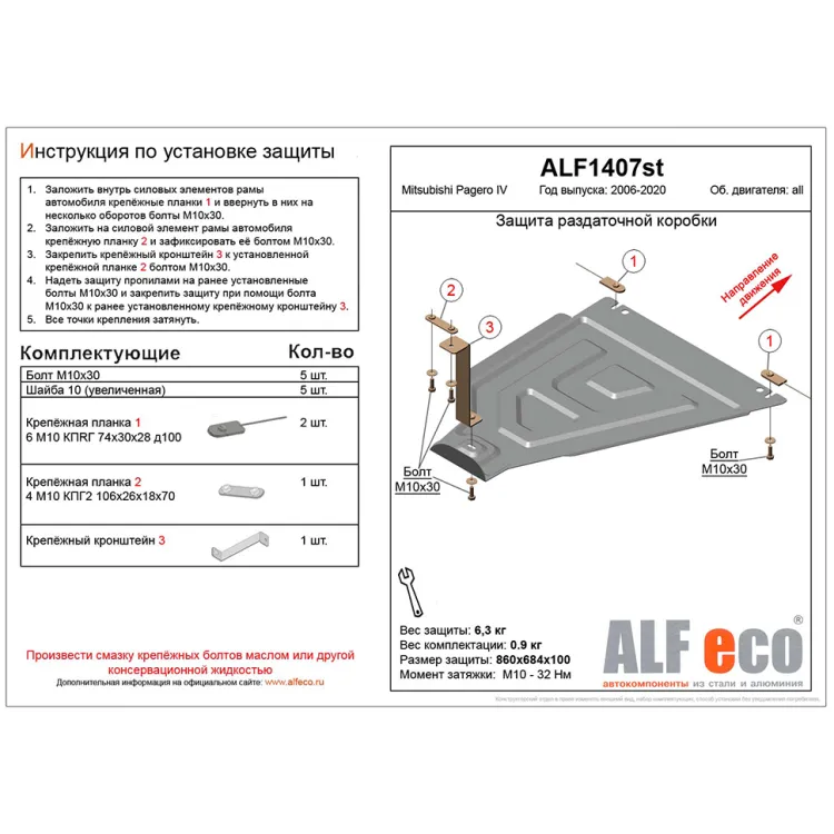 Металлическая защита раздаточной коробки Mitsubishi Pajero 4 2006-. Оригинальный номер ALF1407