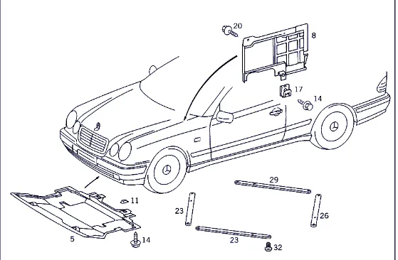 Пластиковая защита двигателя Mercedes CLK W208 1997-2003. Оригинальный номер 500234-6