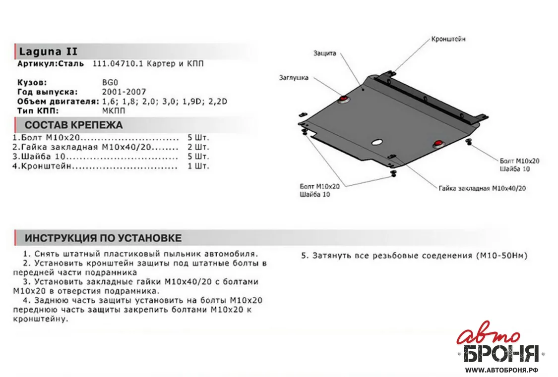 Металлическая защита двигателя Renault Espace 4 2002-2014. Оригинальный номер 111.04710.1