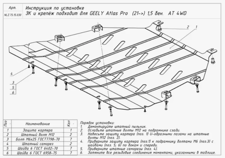 Металлическая защита двигателя и кпп Geely Atlas Pro 2021-. Оригинальный номер NLZ7515030
