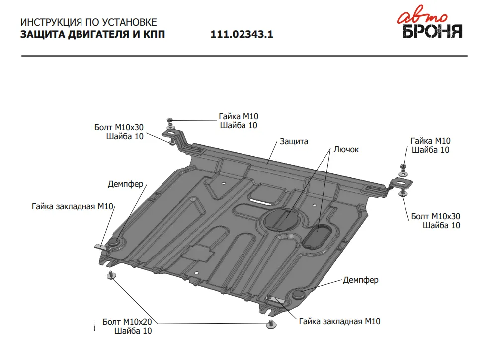 Металлическая защита двигателя и кпп Kia Rio 3 2011-2017. Оригинальный номер 111.02343.1