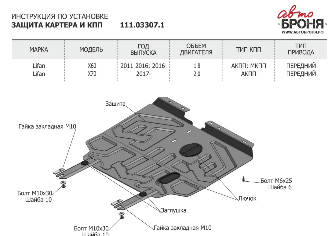 Металлическая защита двигателя и кпп Lifan X70 2018-. Оригинальный номер 111.03307.1