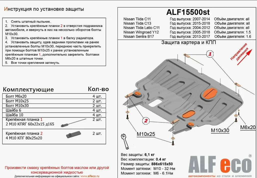 Металлическая защита двигателя и кпп Nissan TIIDA 2015-2018. Оригинальный номер ALF15500