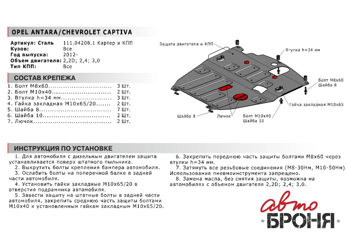 Металлическая защита двигателя и кпп Opel Antara 2011-2017. Оригинальный номер 111.04208.1