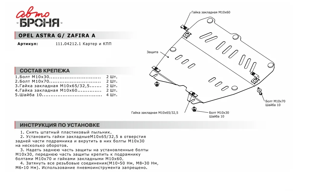 Металлическая защита двигателя и кпп Opel Astra G 1998-2009. Оригинальный номер 111.04212.1