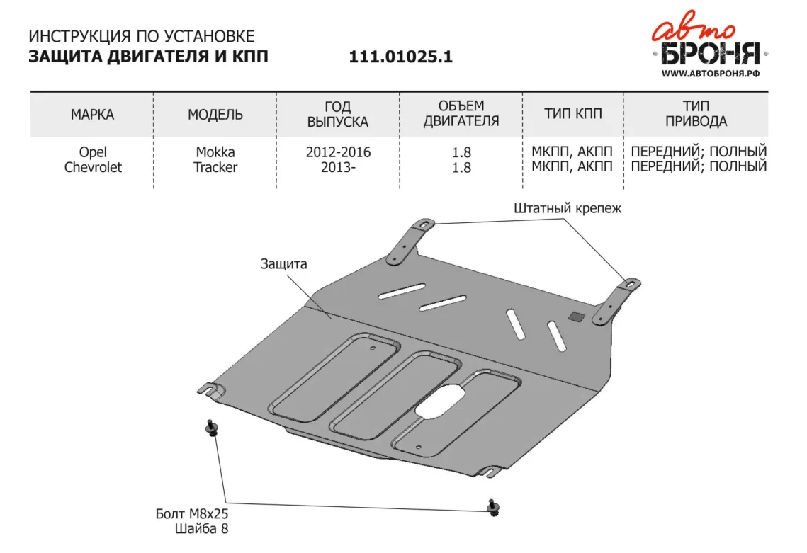 Металлическая защита двигателя и кпп Opel Mokka 2016-2019. Оригинальный номер 111.01025.1