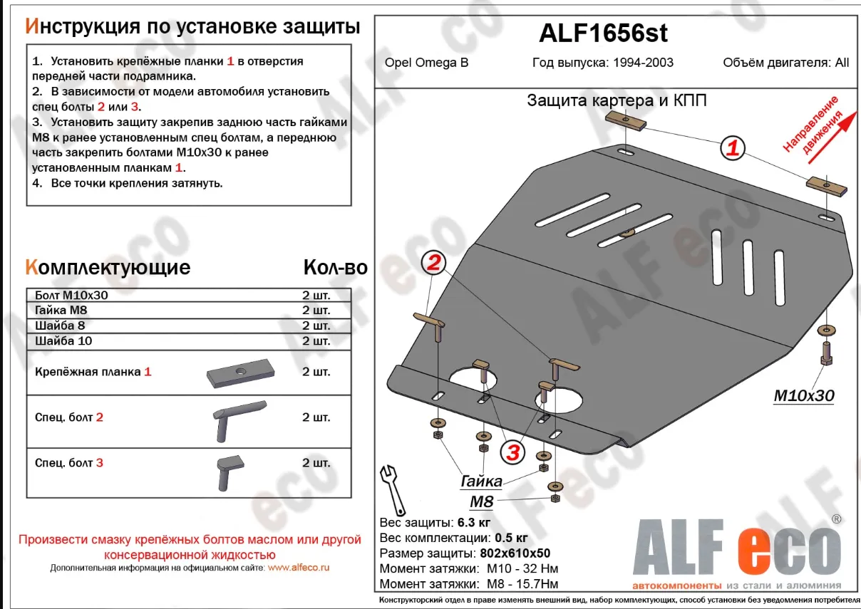 Металлическая защита двигателя и кпп Opel Omega A 1986-1994. Оригинальный номер ALF1656