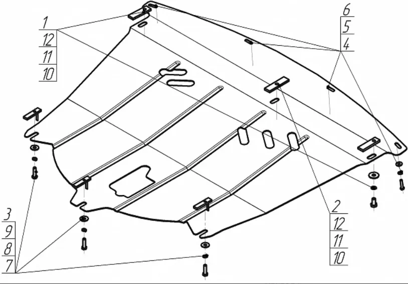 Металлическая защита двигателя и кпп Renault Kadjar 2015-2022 увеличенная. Оригинальный номер 01453