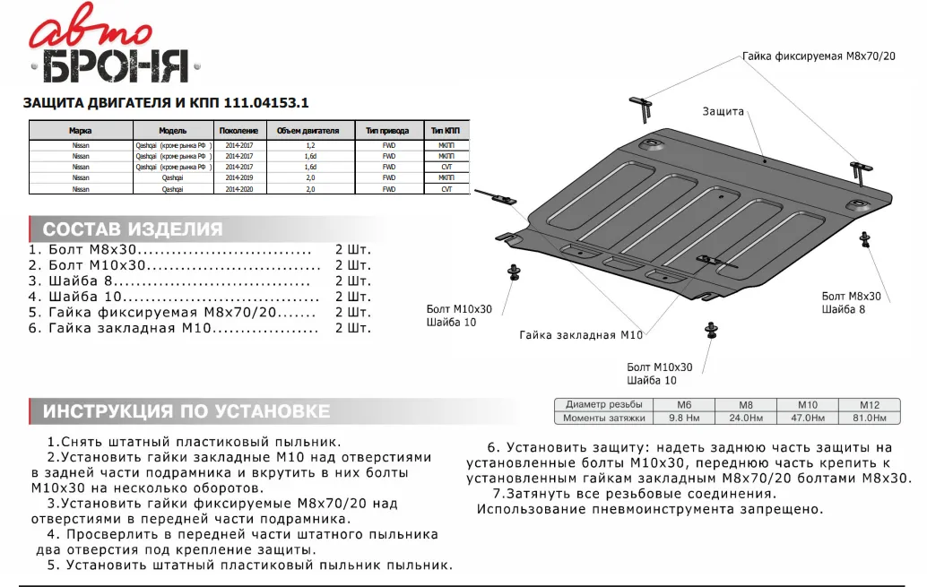 Металлическая защита двигателя и кпп Renault Kadjar 2015-2022. Оригинальный номер 111.04153.1