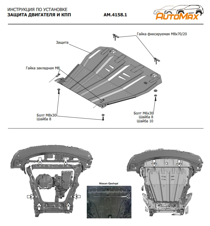 Металлическая защита двигателя и кпп Renault Koleos 2008-2016. Оригинальный номер AM.4158.1