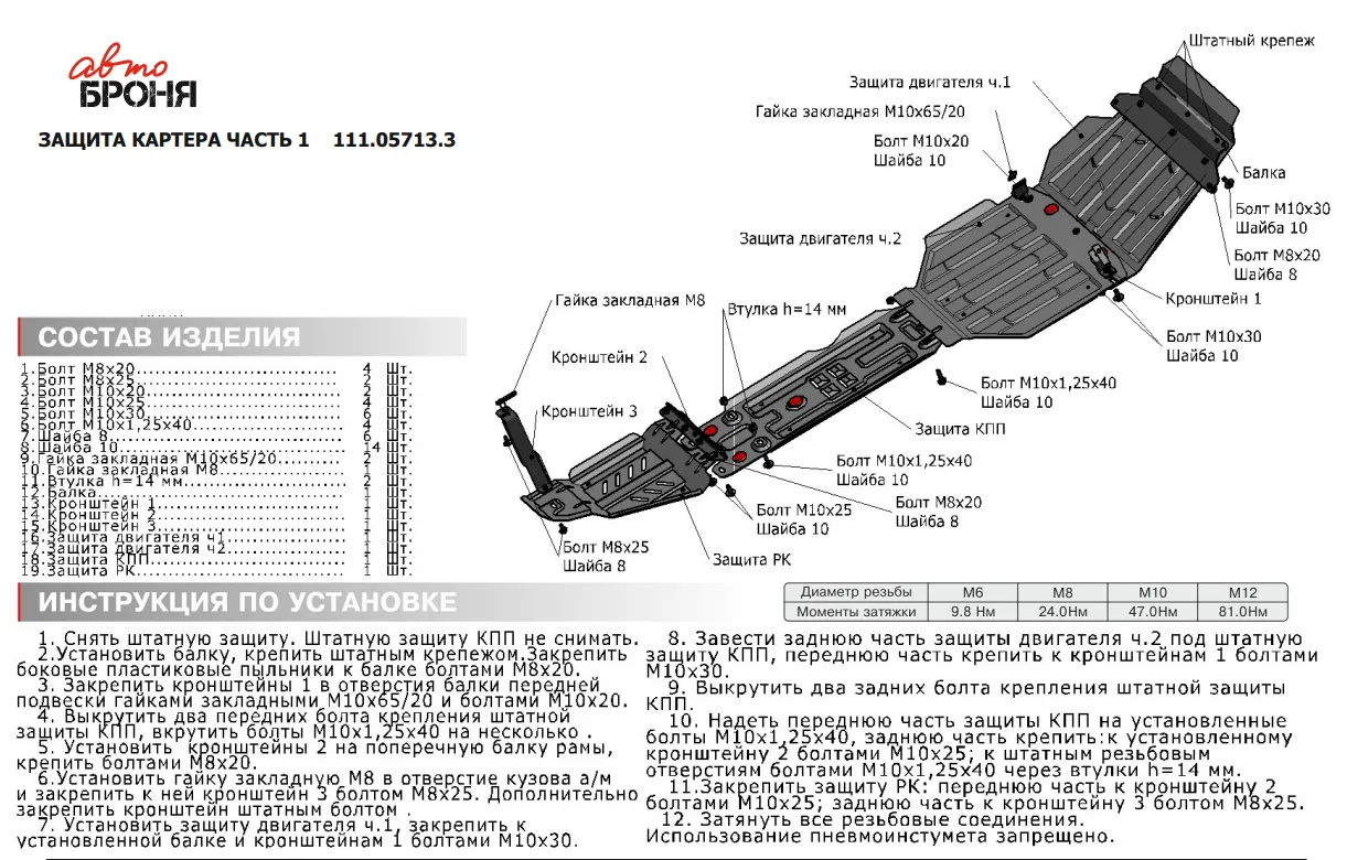 Металлическая защита двигателя Lexus LX 2007-2015 1-я часть. Оригинальный номер 111.05713.3