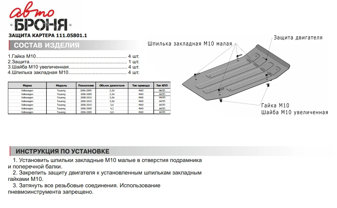 Металлическая защита двигателя Volkswagen Touareg 1 2002-2010. Оригинальный номер 111.05801.1