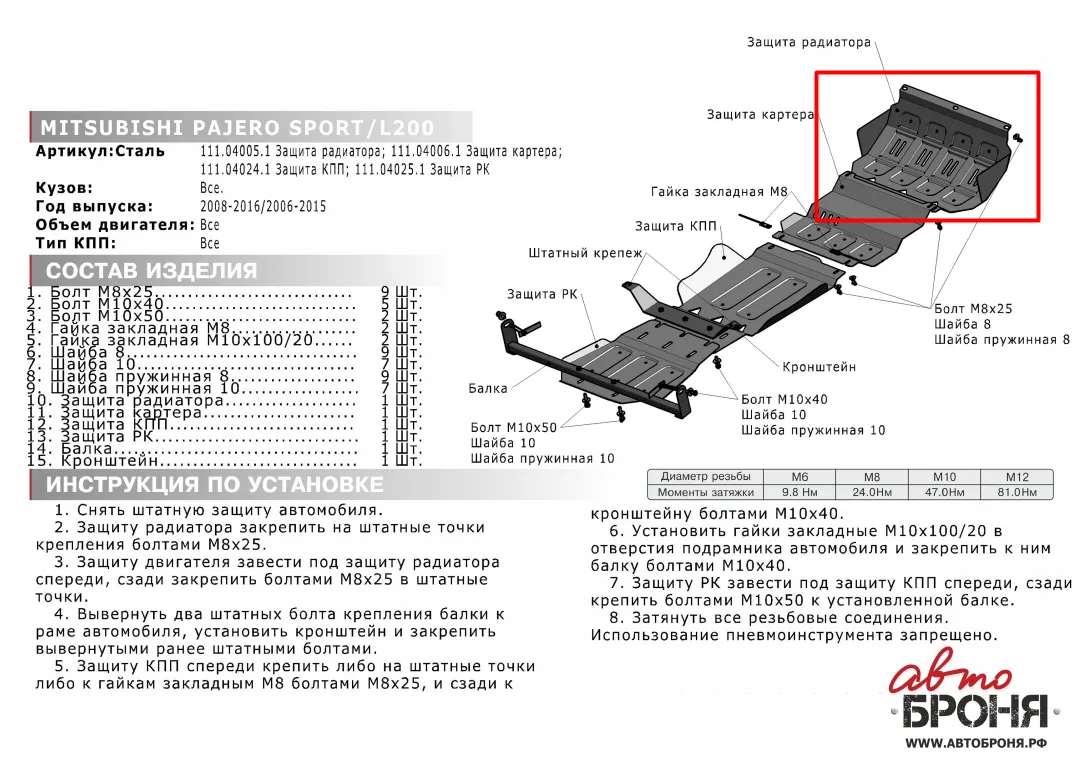АВТОБРОНЯ СТАЛЬ 1,8мм ЗАЩИТА ПОД РАДИАТОР