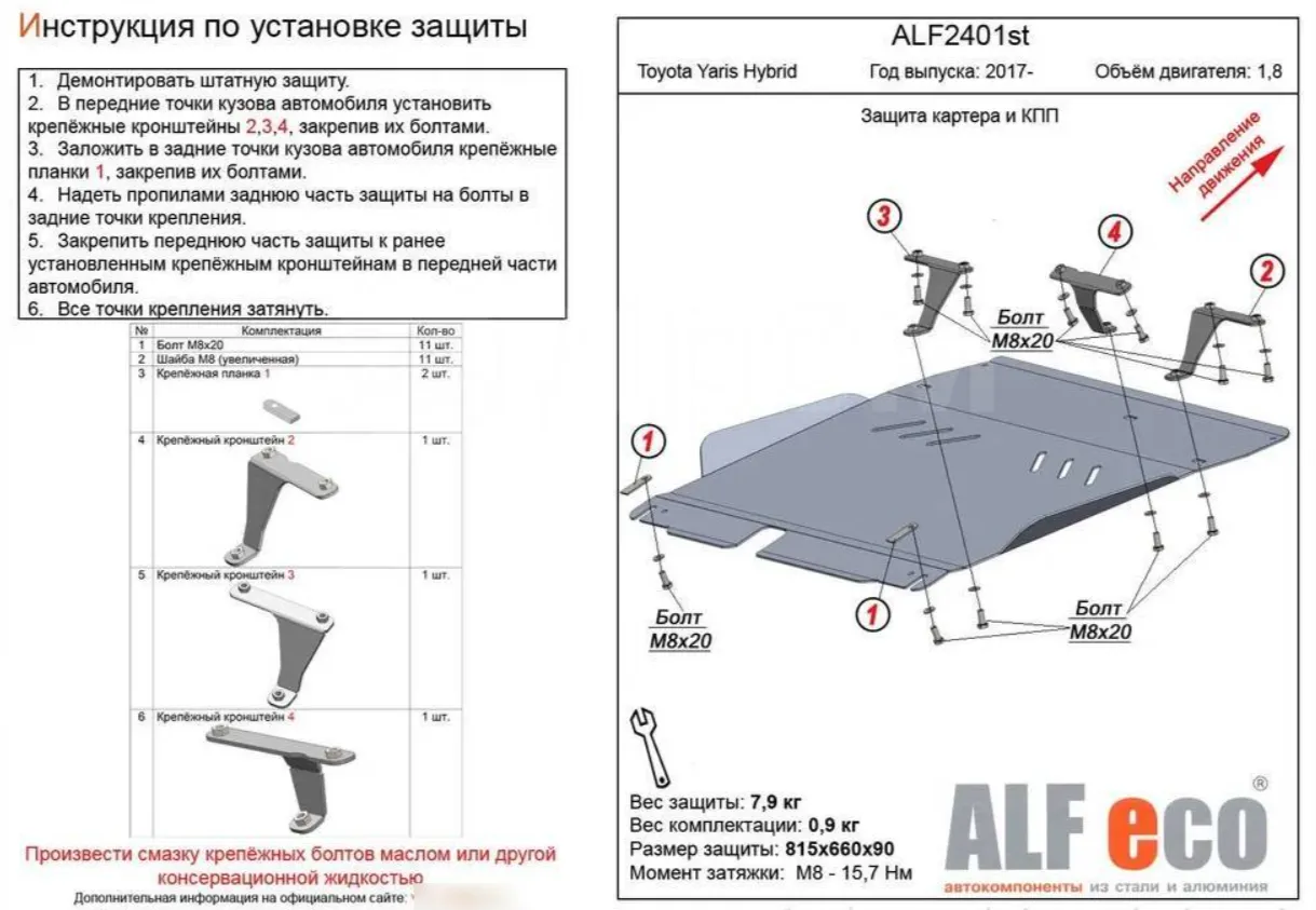 Металлическая защита двигателя и кпп Toyota Yaris Hybrid 2017- V-1,8. Оригинальный номер ALF2401