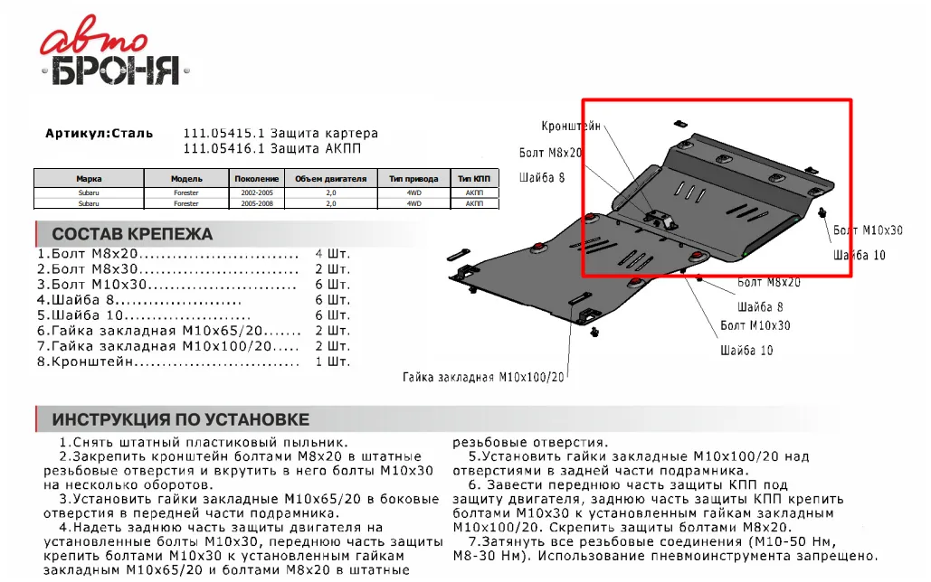 Металлическая защита двигателя Subaru Forester (II). Оригинальный номер 111.05415.1