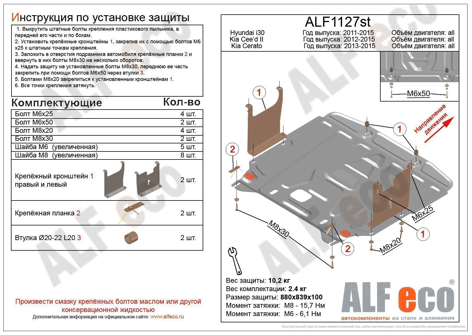 Металлическая защита двигателя и кпп Hyundai i30 (GD) 2011-2015. Оригинальный номер ALF1127