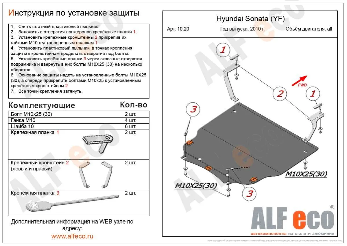 Металлическая защита двигателя и кпп Kia Optima 2010-2016. Оригинальный номер ALF1020