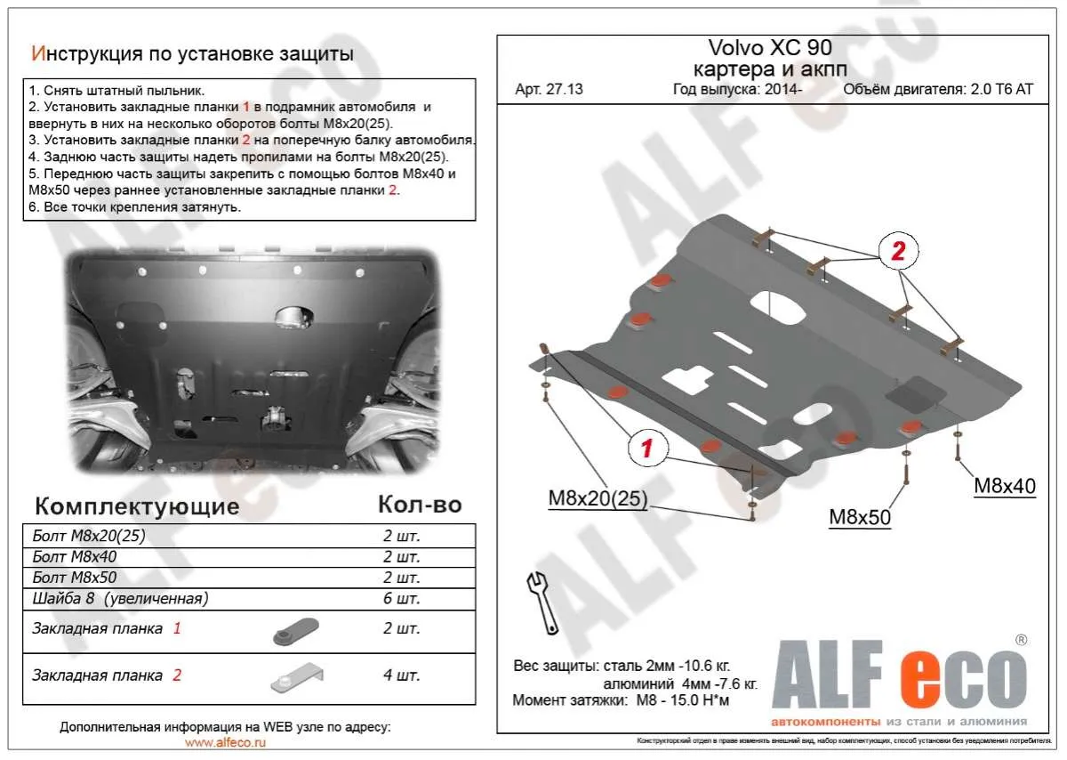 Металлическая защита двигателя и кпп Volvo XC60 2017-2022. Оригинальный номер ALF2713