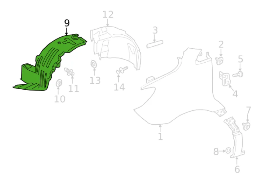 Защита крыла (подкрылок) передний левый Mercedes Sprinter 2018- передняя часть. Арт.